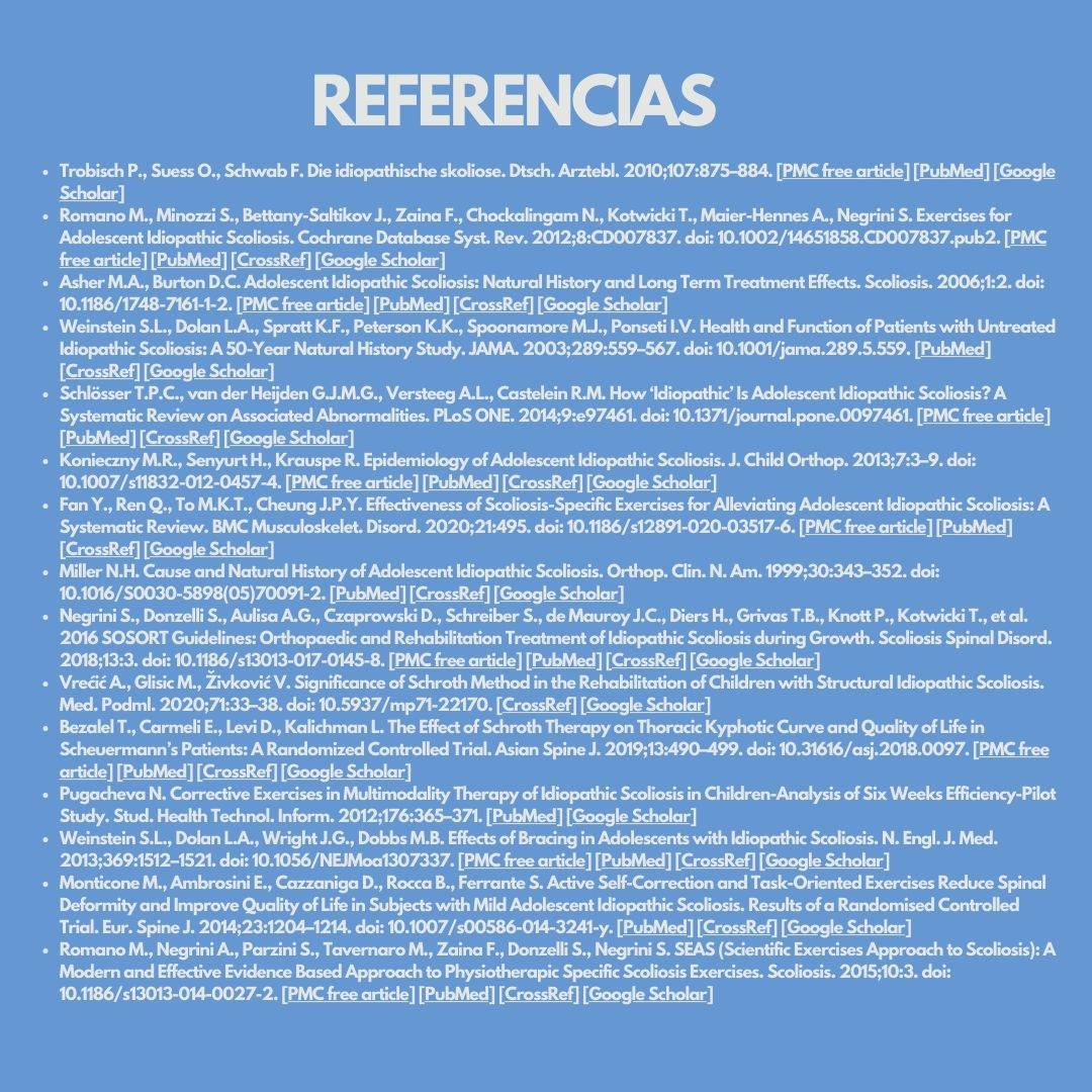 Aquí les dejamos una investigación realizada en el año 2022 sobre la aplicación del método Schroth en el tratamiento de la escoliosis idiopática. Te dejamos el link por si quieres revisarla.